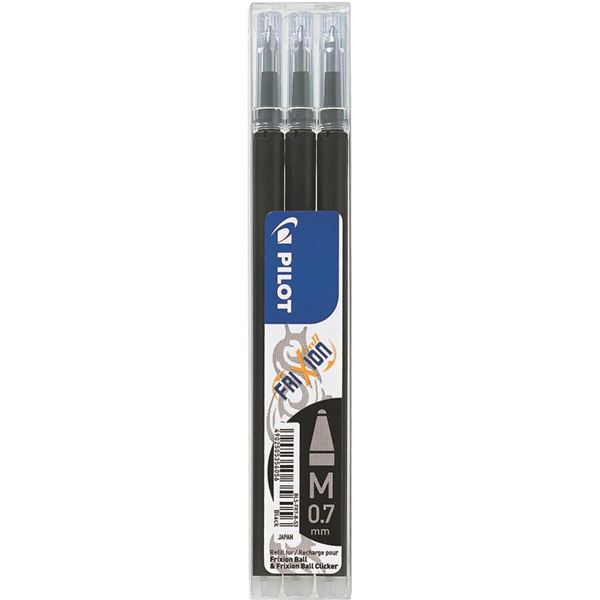 PILOT BLS-FR7 FRIXION ERASABLE ROLLERBALL GEL REFILL MEDIUM 0.7MM BLACK PACK 3