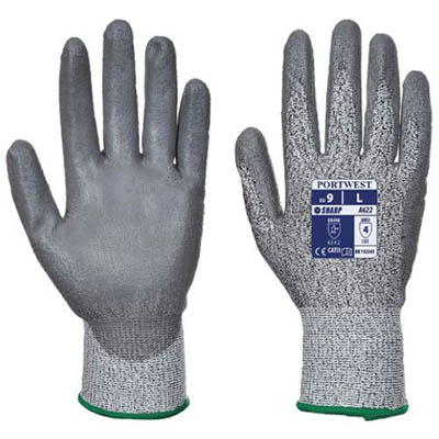 PORTWEST A622 CUT 5 PU PALM GLOVE GREY L