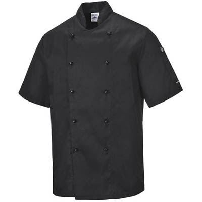 PORTWEST C734 KENT CHEFS JACKET SHORT SLEEVE BLACK XL