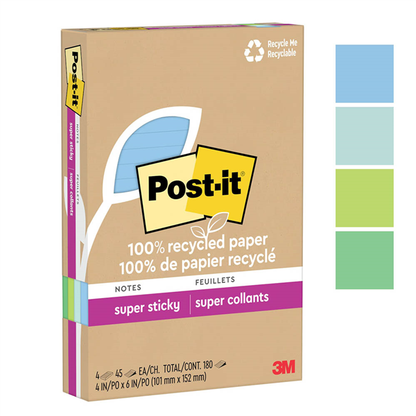 POST-IT 4621R-4SST SUPER STICKY NOTES 101 X 152MM RECYCLED LINED OASIS PACK 4