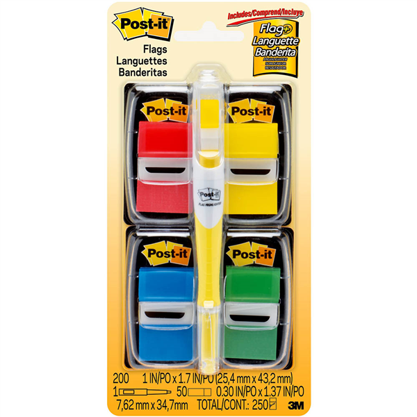 POST-IT 680-RYBGVA FLAGS BRIGHT ASSORTED VALUE PACK 250 - BONUS FLAG PEN