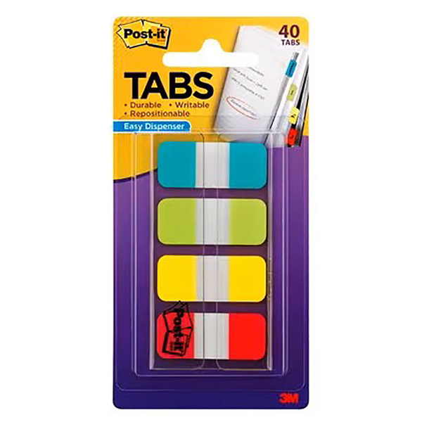 Make it easy to quickly organize binders, notebooks, planners and more Easy to write on and simple to remove and reposition Tabs are durable, you can write on them, and reposition as needed Sticks securely, removes cleanly when you are finished using them Assorted bright colors give you flexibility to organize by color The dispenser keeps Tabs organized and easy to find Extra thickness prevents wear and tear Pack of 40 tabs