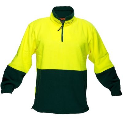 PRIME MOVER MF115 HI-VIS POLAR FLEECE JUMPER LONG SLEEVE 1/4 ZIP 2-TONE YELLOW GREEN MEDIUM