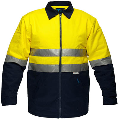 PRIME MOVER MJ987 COTTON DRILL JACKET QUILT PADDED WITH ZIP CLOSURE 2-TONE YELLOW NAVY 4XL
