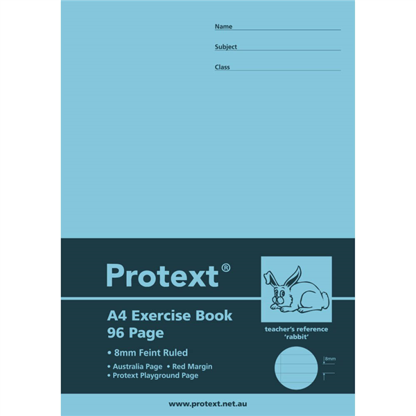 PROTEXT EXERCISE BOOK RULED 8MM 70GSM 96 PAGE A4 RABBIT ASSORTED
