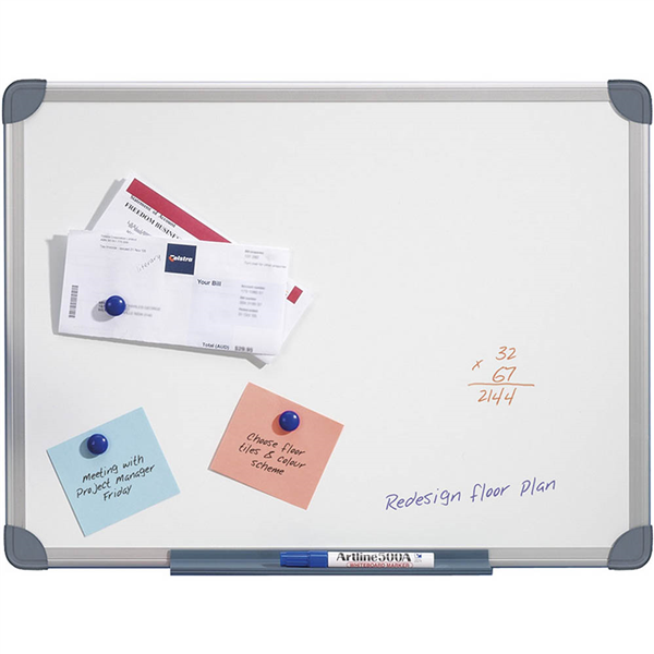 Slimline design minimises protrusion from the wall Contemporary aluminium frame for efficient use in any environment High quality dry erase steel surface Magnetic surface allows the board to be used as bulletin board Includes pen tray, marker and wall mounting kit.