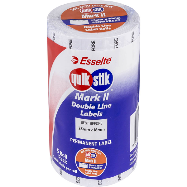 QUIKSTIK MARK II PRICING GUN LABEL PERMANENT BEST BEFORE 1000 LABELS/ROLL 23 X 16MM WHITE PACK 5