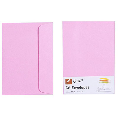 QUILL C6 COLOURED ENVELOPES PLAINFACE STRIP SEAL 80GSM 114 X 162MM MUSK PACK 25