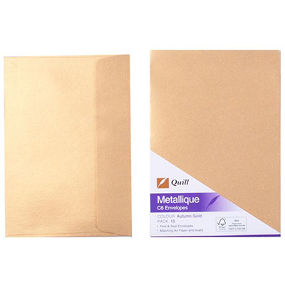 QUILL C6 METALLIQUE ENVELOPES PLAINFACE STRIP SEAL 80GSM 114 X 162MM AUTUMN GOLD PACK 10