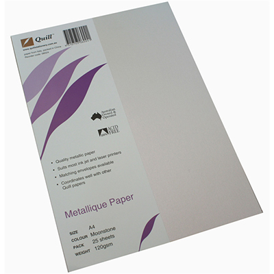 QUILL METALLIQUE PAPER 120GSM A4 MOONSTONE PACK 25