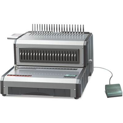 The large flat working area makes it easy to align the pages ready for punching, while the comb is open ready for the punched sheets creating a very productive work centre Punches up to 25 sheets Binds up to 500 sheets Foot pedal operation Disengageable punches Adjustable margins Separate handle to pre-open combs Compatible with A4 21 loop plastic binding combs 2 year warranty
