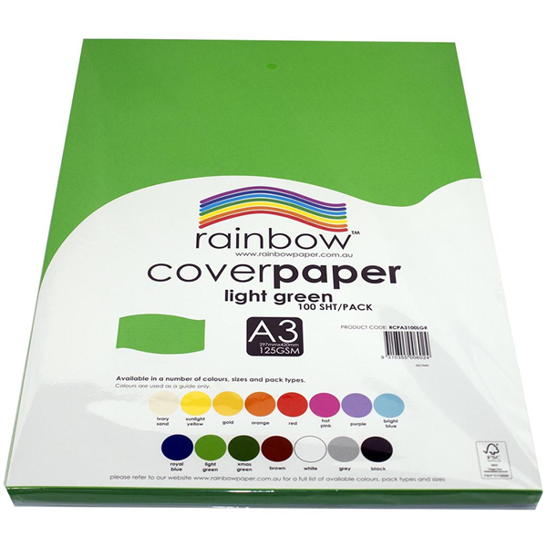 RAINBOW COVER PAPER 125GSM A3 LIGHT GREEN PACK 100