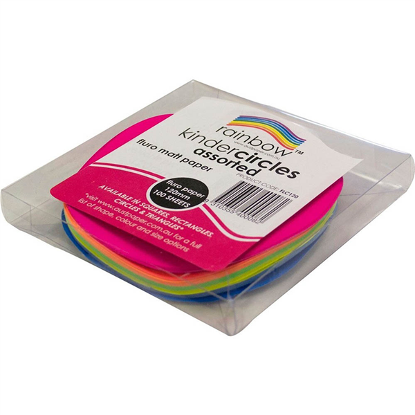 RAINBOW KINDER SHAPES PAPER CIRCLES 85GSM 120MM FLURO ASSORTED PACK 100