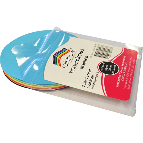 RAINBOW KINDER SHAPES PAPER CIRCLES 85GSM 120MM MATT ASSORTED PACK 100