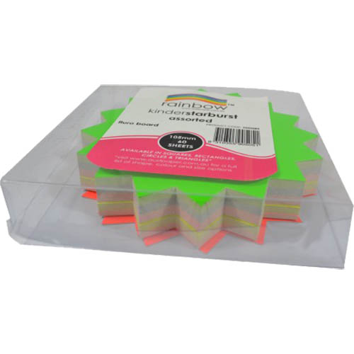 RAINBOW KINDER SHAPES STARBURST 300GSM 150MM FLURO ASSORTED PACK 60