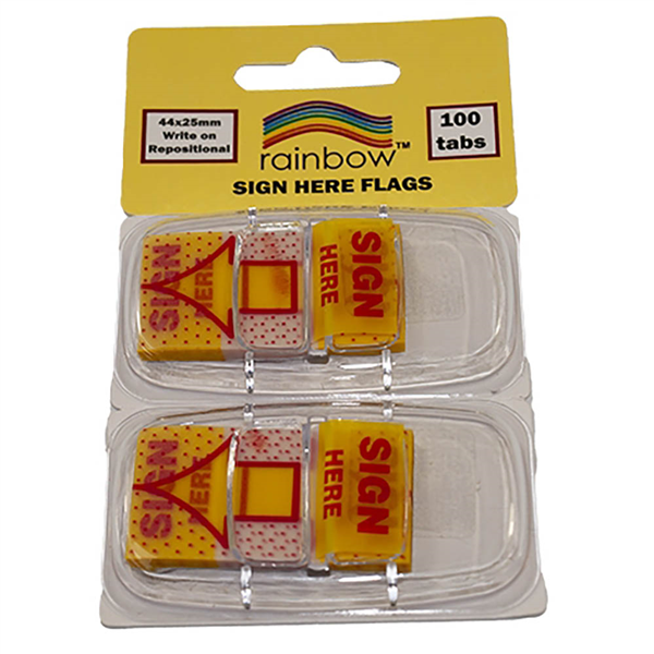 RAINBOW SIGN HERE FLAGS 25X44MM 100 TABS