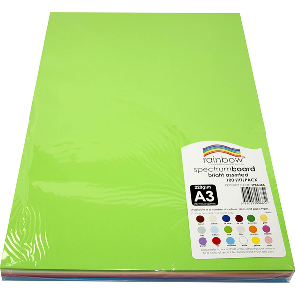 RAINBOW SPECTRUM BOARD 220GSM A3 BRIGHT ASSORTED PACK 100