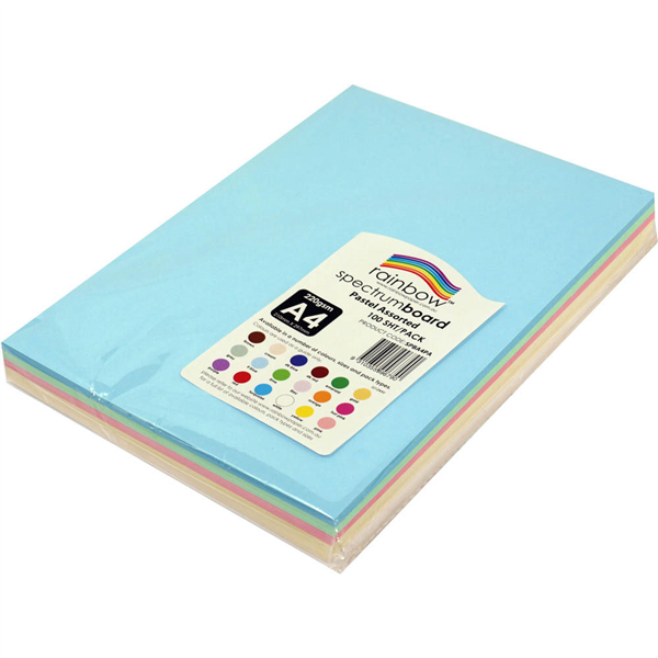 RAINBOW SPECTRUM BOARD 220GSM A4 PASTEL ASSORTED PACK 100