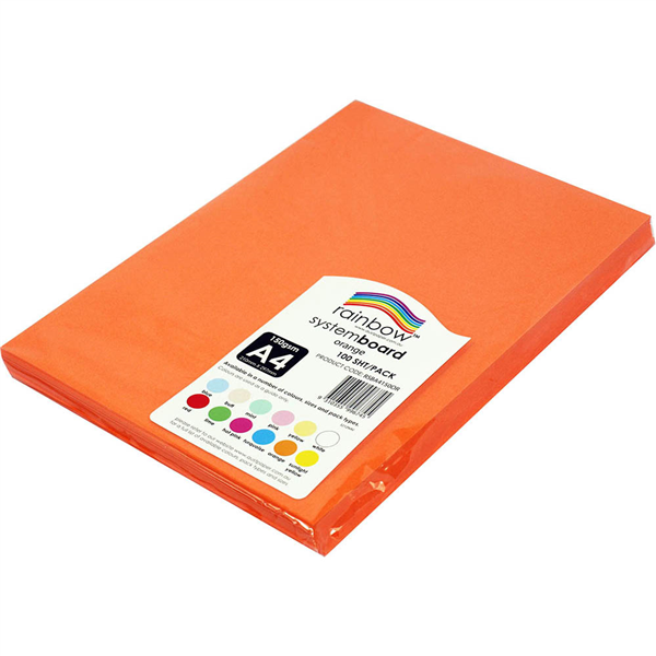 RAINBOW SYSTEM BOARD 150GSM A4 ORANGE PACK 100