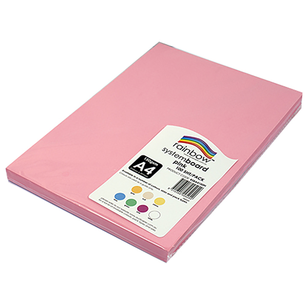 RAINBOW SYSTEM BOARD 150GSM A4 PINK PACK 100