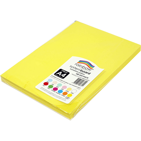 RAINBOW SYSTEM BOARD 150GSM A4 SUNSHINE YELLOW PACK 100