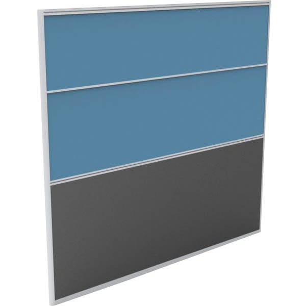 The slimline 30mm deep Rapid Screen is easy to assemble, pinable with fabric upholstery above desk height and charcoal melamine under the desk to minimise wear