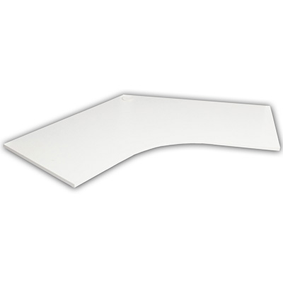 120 deg workstation E1 rated melamine board Matching rigid edging Work top only Table base or legs sold separately Backed by a 5 year warranty