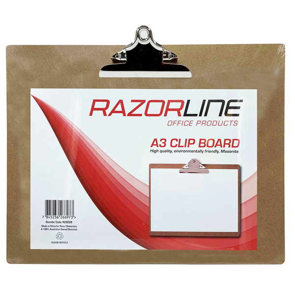 RAZORLINE CLIPBOARD MASONITE LANDSCAPE LARGE CLIP A3 BROWN 250SHEETS
