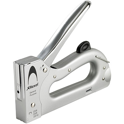 Suitable for attaching paper or fabric to a variety of base materials Pulling handle prevents staples firing when locking down handle Rear loading Uses No 23/6, No 23/8 or No 23/10 staples