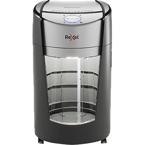 Rexel Shredmax Shredder features a unique manual feed shredder with bin rotating technology which prevents peak build up