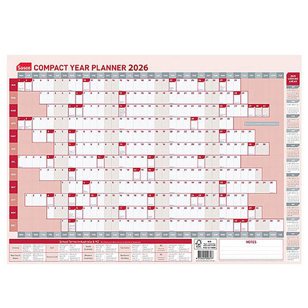 SASCO 1025294 COMPACT 594 X 420MM YEAR PLANNER