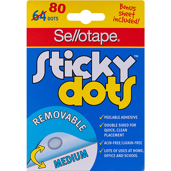 SELLOTAPE STICKY DOTS REMOVEABLE MEDIUM PACK 64 (BONUS 16)