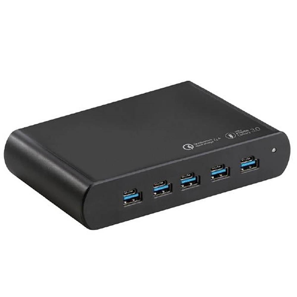 This powerful GaN charger is designed to sit on top of a desk, giving you easy access to its 5x USB-C or 5 x USB-A ports