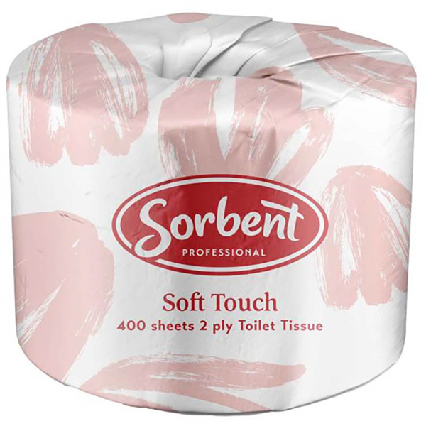 SORBENT PROFESSIONAL SOFT TOUCH TOILET TISSUE 2 PLY 400 SHEETS CARTON 48