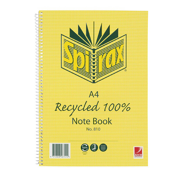 SPIRAX 810 NOTEBOOK 7MM RULED 100% RECYCLED CARDBOARD COVER SPIRAL BOUND A4 120 PAGE