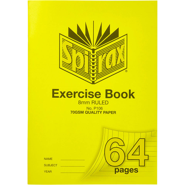 SPIRAX P106 EXERCISE BOOK 8MM RULED 70GSM 64 PAGE A4