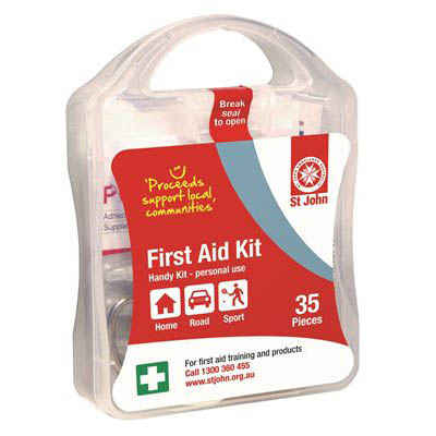 The St John Handy First Aid Kit is a small personal use kit easy to pop into a back pack or handbag Containing all the items essential to assist with minor first aid injuries, it is great to carry around for every day use St John First Aid Kits are TGA compliant and tested by 10,000 volunteers to ensure the highest quality and ease of use TGA compliant contents