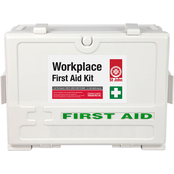 It covers cuts, burns, bruising, strains, sprains and minor wounds Suitable for your office, warehouse, remote locations and wet areas Made from tough ABS material, this cabinet incorporates a recessed carry handle and an optional quick release wall bracket is available for wall mounting Features a dust proof and waterproof seal around the lid Developed in line with the WHS Code of Practice Refill kit available: 7108434 - ST JOHN WORKPLACE REFILL PACK