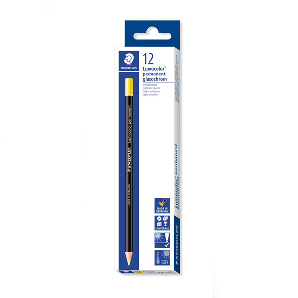 STAEDTLER 108 LUMOCOLOR PERMANENT GLASOCHROM PENCILS YELLOW BOX 12