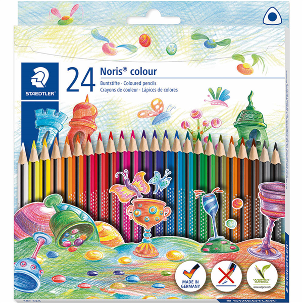 STAEDTLER 187 NORIS COLOUR TRIANGULAR COLOURING PENCILS ASSORTED BOX 24