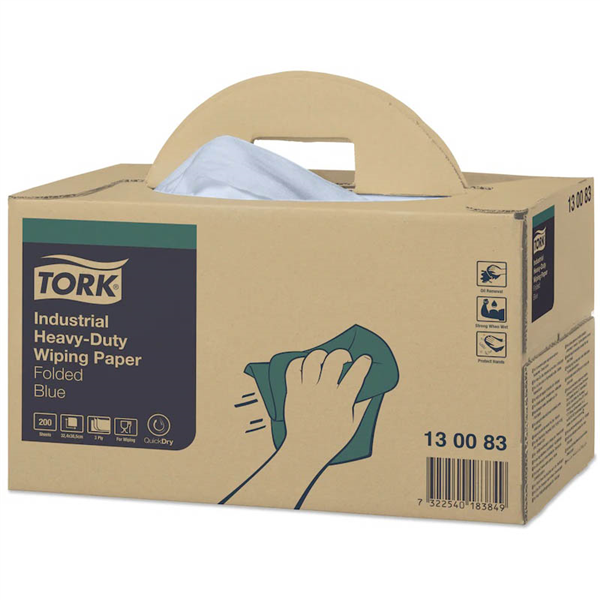 TORK 130083 INDUSTRIAL HEAVY DUTY WIPING PAPER 3-PLY BLUE BOX 200