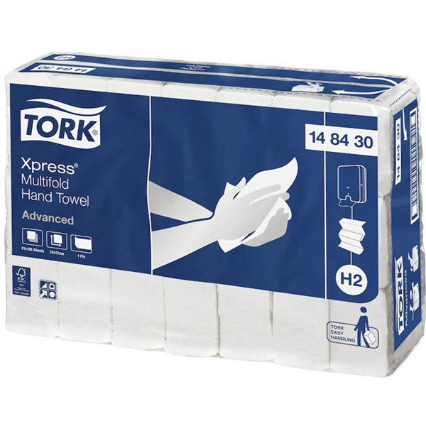 TORK 148430 H2 XPRESS ADVANCED SLIMLINE MULTIFOLD HAND TOWEL 1-PLY 210 X 240MM WHITE PACK 185 SHEET
