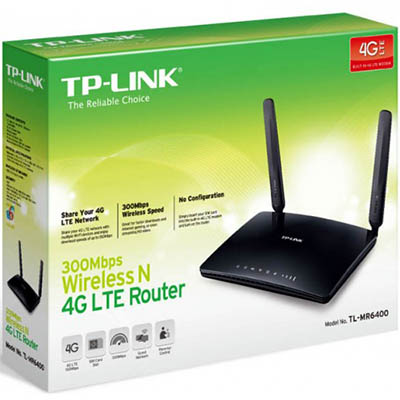 The TL-MR6400 allows you to share your 4G LTE network with multiple Wi-Fi devices so you can enjoy uninterrupted HD movies, rapid file downloads, and video chats that wont freeze up The 4G LTE router provides the 300Mbps Wi-Fi connections that you need for online gaming, HD streaming video, ultra-fast downloads. The integrated antennas allow you to enjoy stable wireless connections and excellent wireless coverage With an integrated 4G LTE modem and a built-in SIM card slot, all you need to do insert a SIM card and turn the router on. Enjoying fast, stable Wi-Fi on a 4G LTE network has never been easier The TL-MR6400 offers unmatched convenience and versatility. It provides the perfect solution in any situation, from relaxing at home to working in a remote location, just plug it in to boost on-site productivity and stay connected in a diverse range of environments. From the exhibition center to the RV, the TL-MR6400 has you covered With the inclusion of the WAN/LAN port, the TL-MR6400 can also support a wide variety of connection types, including cable, fiber, and DSL modems Share your 4G LTE network with multiple Wi-Fi devices and enjoy download speeds of up to 150Mbps Wireless N speeds of up to 300Mbps Integrated antennas provide stable wireless connections Requires no configuration - just insert a SIM card and turn it on to enjoy high speed internet access LAN/WAN port provides options and flexibility, allowing you to choose your connection type