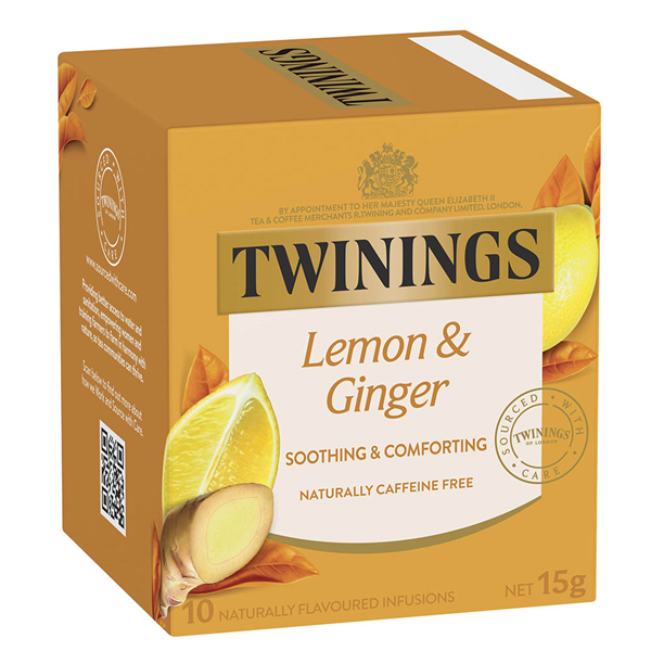 TWININGS LEMON AND GINGER TEA BAGS PACK 10