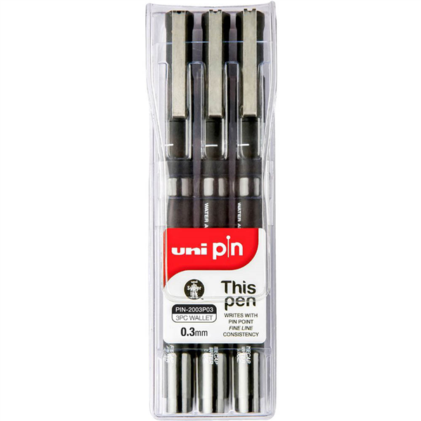 UNI-BALL 200 PIN FINELINER PEN 0.3MM BLACK WALLET 3