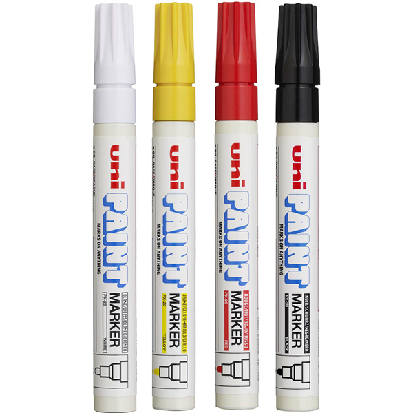 The PX-20 paint marker from Uni-Ball is an incredibly versatile oil based permanent marker that writes on almost all surfaces including metal, wood, glass, plastic, fabric and stone surfaces