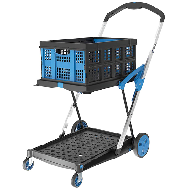 This lightweight utility trolley only weighs 8.4kg and folds flat for easy storage in a vehicle or cupboard You can use the V Cart with or without the included collapsible basket An additional basket can be purchased separately to sit on the bottom shelf The baskets fit standard size suspension files so great for transporting documents around an office or a courtroom The top shelf folds up if you have a high load to transport This cart is very popular in hospitals, laboratories and the medical industry due to the handy baskets and ease of use Very easy to steer Capacity of 75kg It fits suspension files and plastic tub sizes 32, 52 or 68L