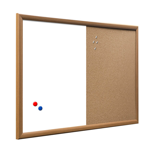 VISIONCHART COMBO PINBOARD 900X600MM CORK/WHITEBOARD OAK STYLE FRAME