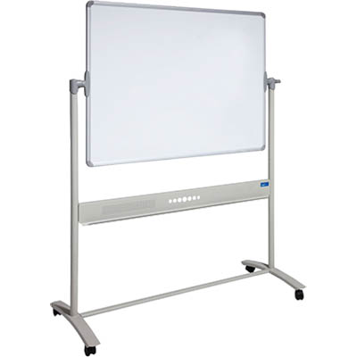 Stylish corporate looks with quality magnetic whiteboard surface Tubular steel construction in Pearl Silver powder coated finish Pivots 360 degree with a unique locking mechanism Full length pen tray Strong lockable castors Ideal for heavy users 25 year surface warranty