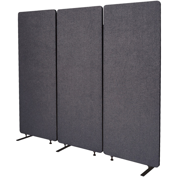 28mm acoustic panel designed to reduce office noise levels Simple and quick zip system to join panels together Easily expanded or contracted by zipping additional panels Leg system 1 x flat-t leg and 1 x peg leg - anti trip hazard design Panels can be rotated 270 degrees to fit around corners and office layout Rated to absorb 85% of ambient noise Made from 100% recycled PET eco-friendly materials Fabric 100% Post-Consumer